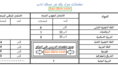 باك حر اداب دروس ومعاملات ومدة الاجتياز جميع المواد bac libre 2025
