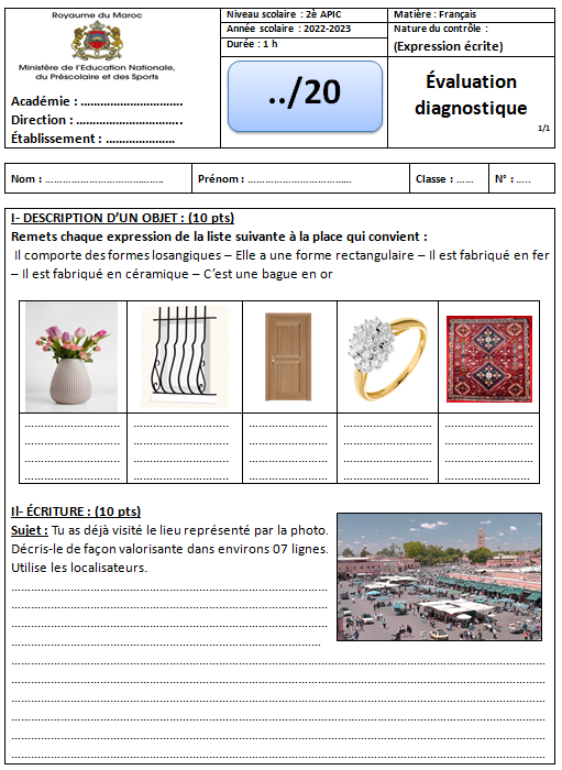 Télécharger l’évaluation diagnostique en WORD + PDF