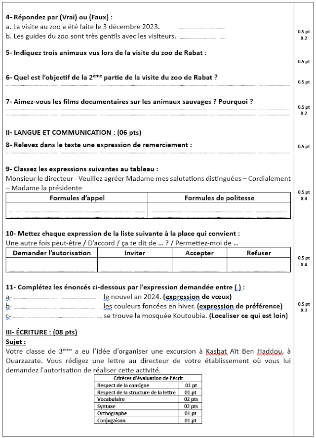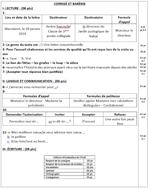 Contrôle Français 3ème Collège Maroc 2024, Livre Passerelle, Sujet Corrigé PDF, 3ème APIC, Révisions Bac Maroc, Comment sont Donnés les Points, Académie Marocaine, Ministère Éducation Nationale.